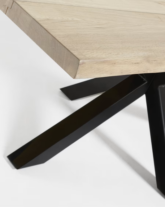 Kave home Argo oak veneer table with a whitewashed finish and black steel legs,