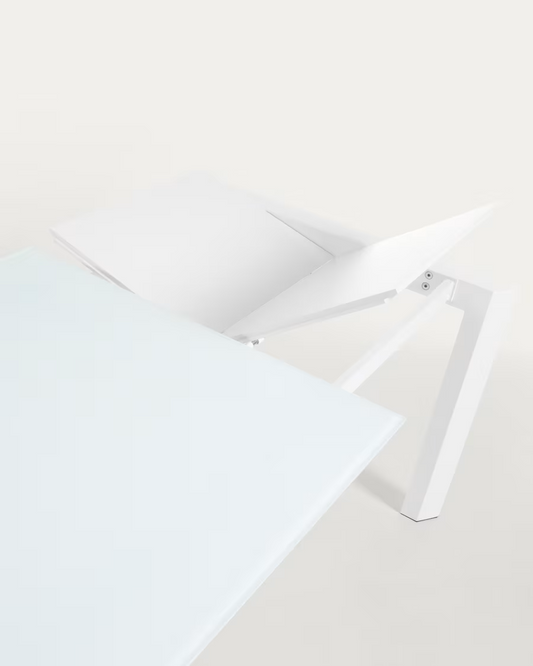 Kave home Axis white glass extendable table with white steel legs 120 (180) cm