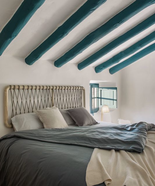 Kave Home Aberash solid white cedarwood and grey cord headboard, for 160 cm beds