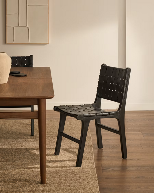 Kave Home set of 4 Calixta chair in leather and solid mahogany wood with black f
