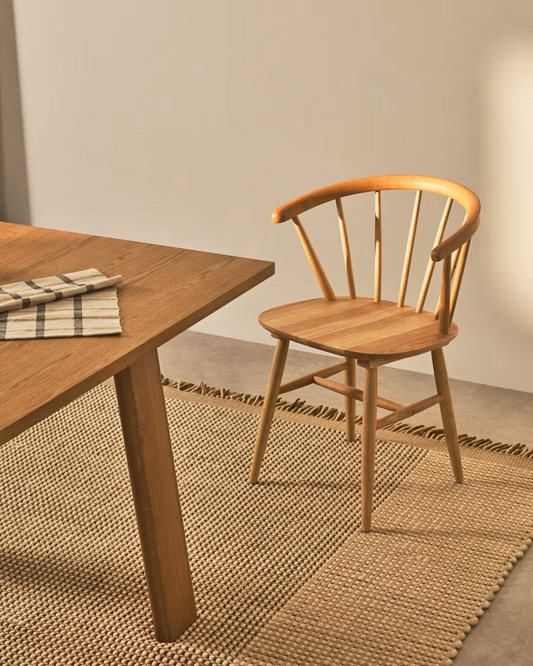 Kave Home Trise MDF and solid rubber wood chair with natural lacquer