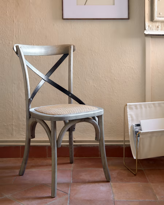Kave Home 2 x Alsie chair in solid birch wood with brown lacquer and rattan seat
