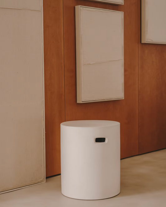 Kave Home Aiguablava footrest in white cement, Ø 37 cm