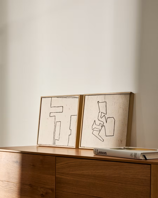 Kave Home Neyra set of 2 black beige hand-painted abstract pictures 30x30cm